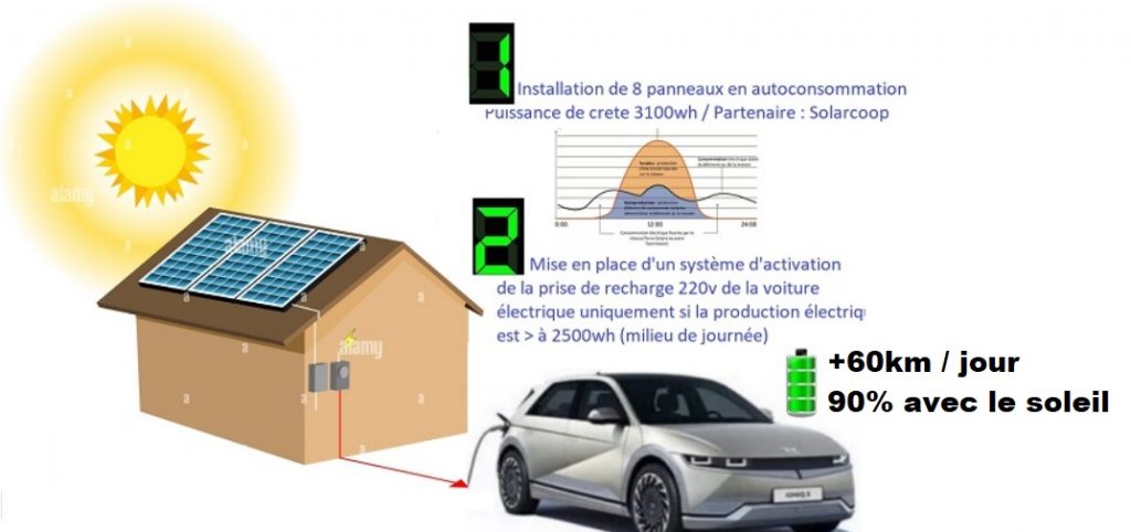 Ci-dessous l’exemple de la journée du 28/01/2024 avec une production photovoltaique de 10,73kw pour une recharge de la voiture électrique de 12,06kw soit 89% de la recharge GRATUITE avec l’energie solaire de mes propres panneaux en autoconsommation. Seulement 11% via EDF (1,33kwh = 30centimes)