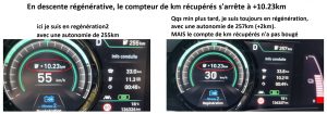 J’ai identifié un bug dans l’affichage des km récupérés. Il m’arrive très souvent de faire des routes de montagne et dans la descente il arrive que je reste en régénération sans toucher l’accélérateur jusqu’à 10min (Et oui je suis dans un coin bien montagneux). Voyez par vous même. J’ai ce bug à chaque fois. Ayant …