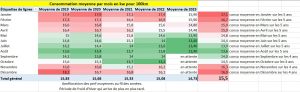 Tableau des conso/autonomie au fil des saisons (dernière MAJ Novembre 2025)