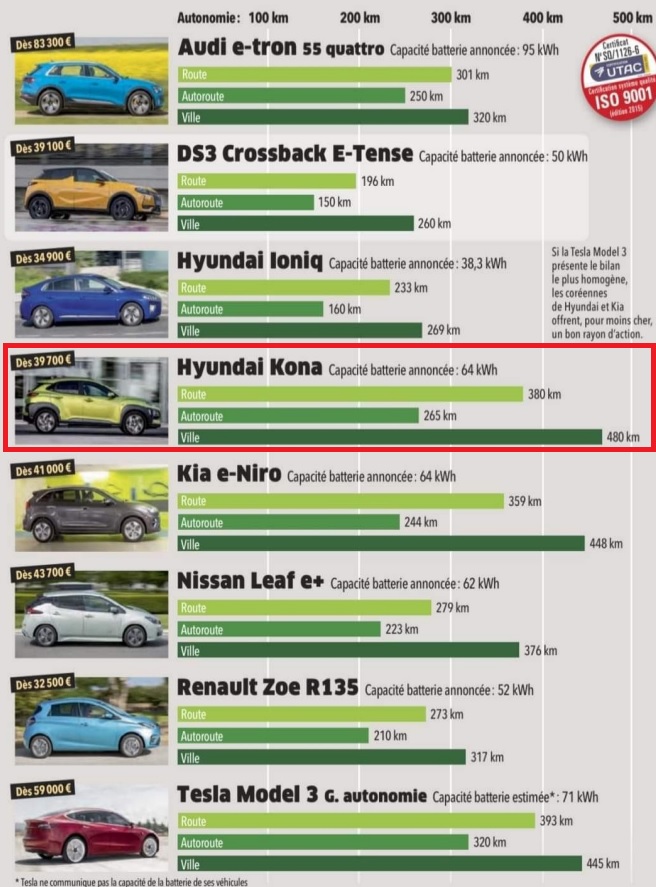 On rappelle ici l’importance de la garantie constructeur. Hyundai : 5ans la voiture, 8ans la batterie. Regardez bien ce point lors de votre achat, toutes les voitures et les stratégies de nos constructeurs sont loin d’être comparables. Si la voiture est garantie 2ans et qu’il faut payer pour prolonger la garantie, c’est que statistiquement il y a des risques que ça arrive…