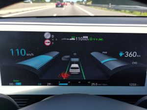 On découvre progressivement les différentes options de conduite. Le régulateur adaptatif qui permet de maintenir une vitesse tout en s’adaptant à la voiture qui nous précède. Le changement automatique de vitesse du régulateur. Cette option, disponible uniquement sur autoroute configure le régulateur a la vitesse maximale autorisée via le système de lecture des panneaux. Un …